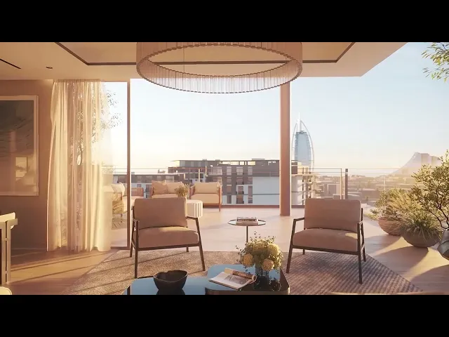 Modern Finishes – Homes feature open-plan designs, floor-to-ceiling windows, and private terraces with views of Burj Al Arab or the community, blending chic interiors with elegant detailing and natural light.